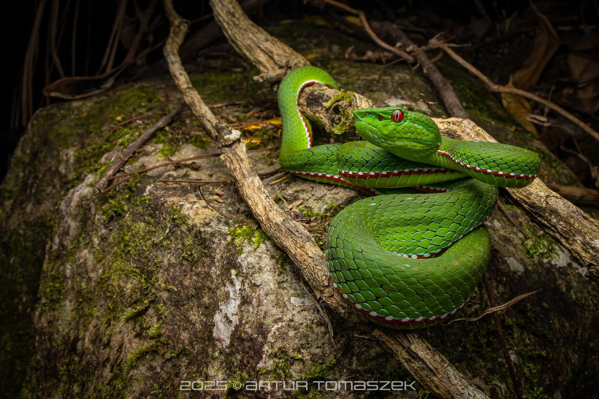 It was rather dry and it got pretty cold, especially when we stayed near Fansipan Mountain, but long hikes and a lot of effort put into herping paid off as we encountered the main target, Bourret’s pit viper (Protobothrops jerdonii ssp. bourreti), and not just one but three of them! Absolutely stunning vipers, way more impressive when seen live rather than on photos.
